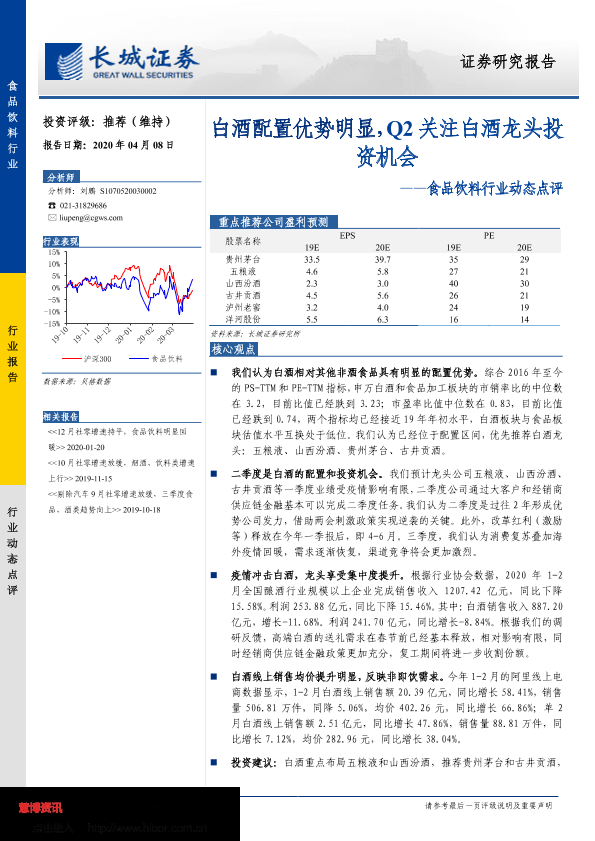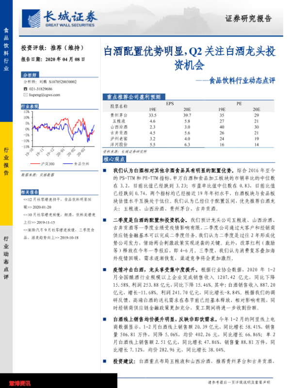 【长城证券】【20200408】食品饮料行业动态点评:白酒配置优势明显,Q2关注白酒龙头投资机会-8页