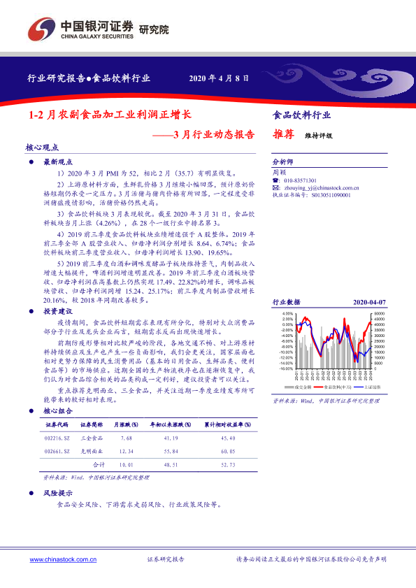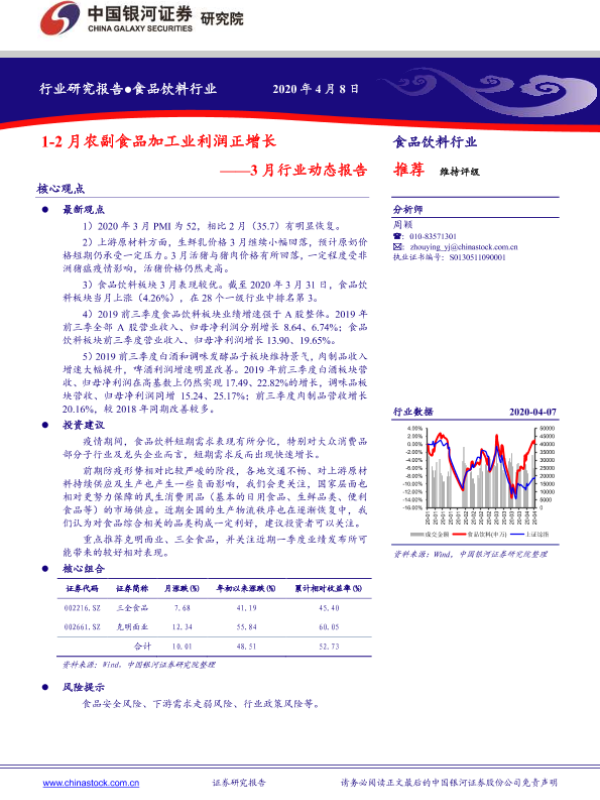 【银河证券】【20200408】20200408-中国银河-食品饮料3月行业动态报告:1-2月农副食品加工业利润正增长-35页
