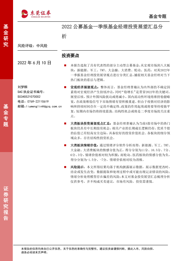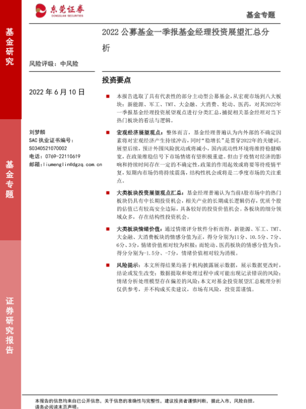 【东莞证券】【20220610】2022公募基金一季报基金经理投资展望汇总分析-18页