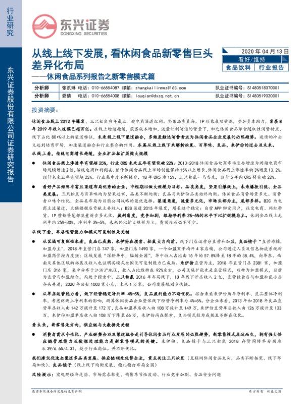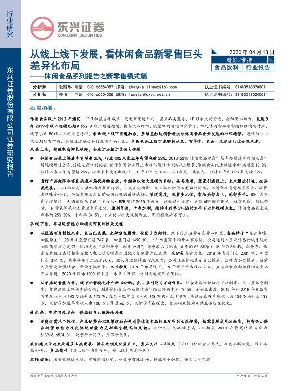 【东兴证券】【20200413】休闲食品系列报告之新零售模式篇:从线上线下发展,看休闲食品新零售巨头差异化布局-38页