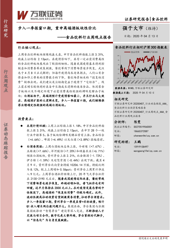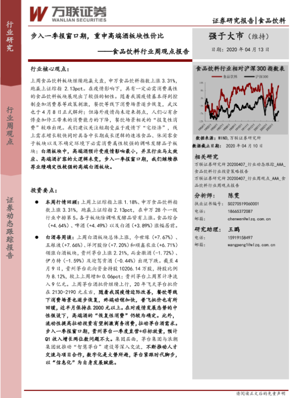【万联证券】【20200413】20200413-万联证券-食品饮料行业周观点报告:步入一季报窗口期,重申高端酒板块性价比-14页
