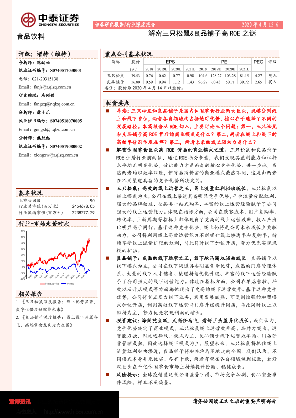 【中泰证券】【20200415】食品饮料:解密三只松鼠&良品铺子高ROE之谜-22页