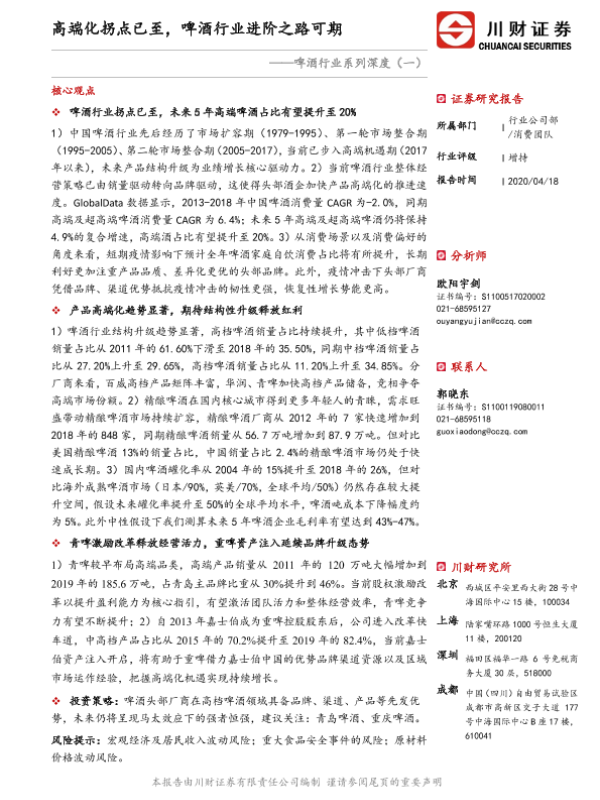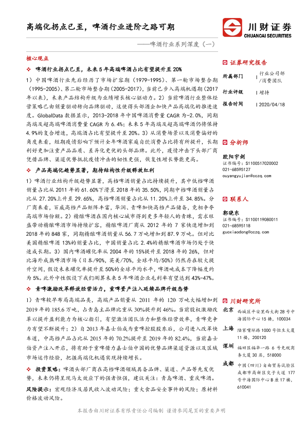 【川财证券】【20200418】啤酒行业系列深度(一):高端化拐点已至,啤酒行业进阶之路可期-26页
