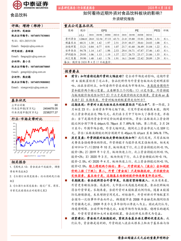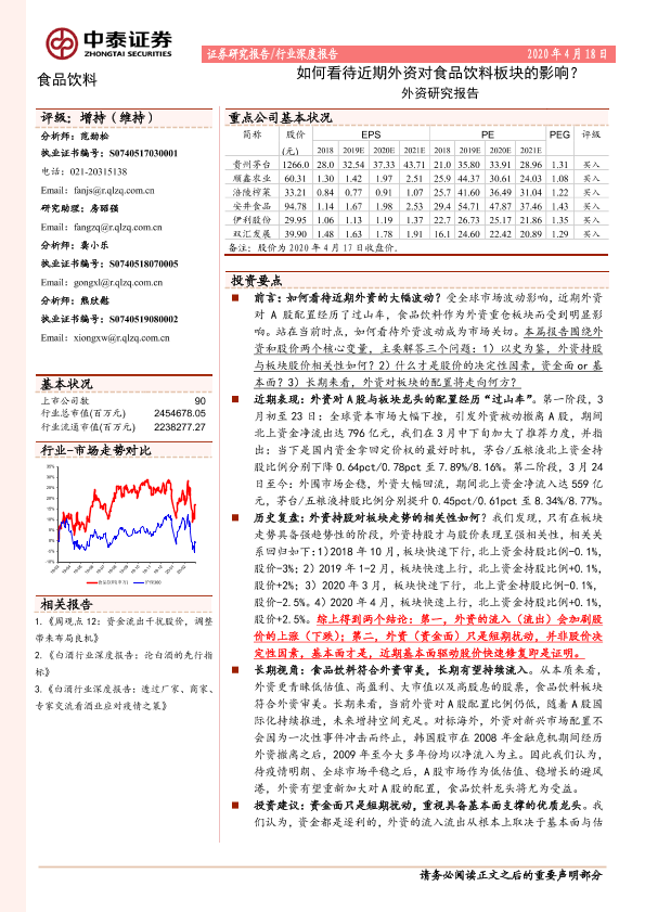 【中泰证券】【20200418】如何看待近期外资对食品饮料板块的影响?-20页