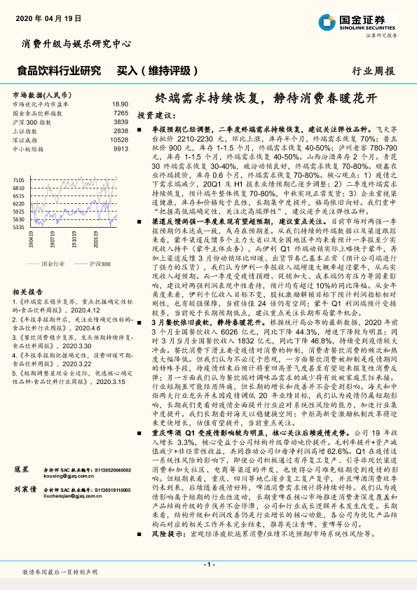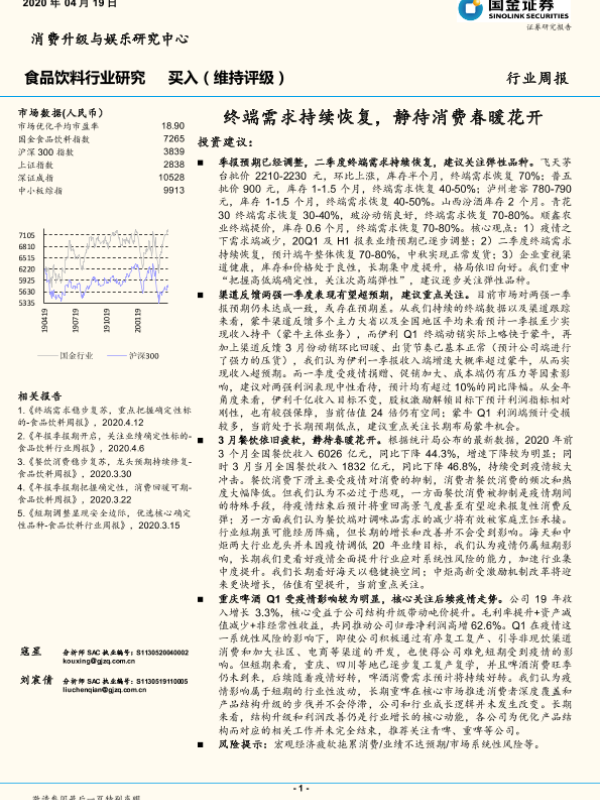 【国金证券】【20200419】20200419-国金证券-食品饮料行业研究周报:终端需求持续恢复,静待消费春暖花开-16页