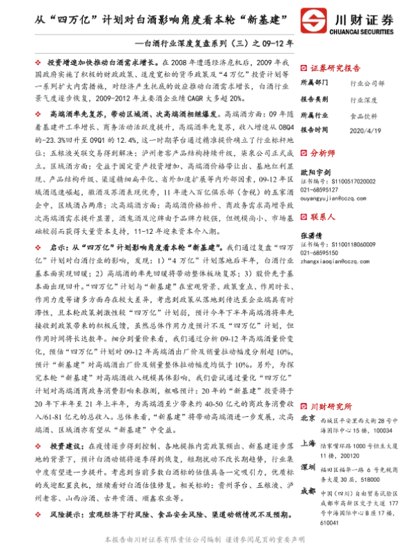 【川财证券】【20200419】白酒行业深度复盘系列(三)之09-12年:从“四万亿”计划对白酒影响角度看本轮“新基建”-37页