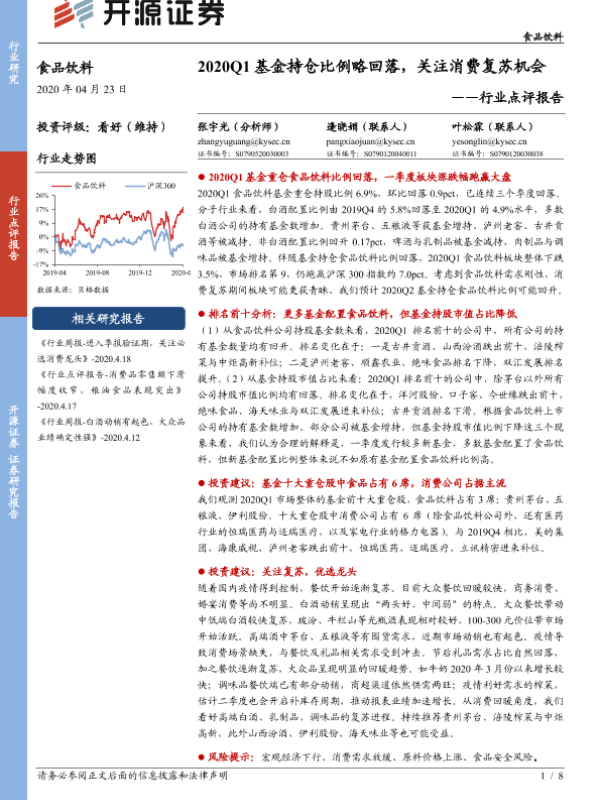 【开源证券】【20200423】20200423-开源证券-食品饮料行业点评报告:2020Q1基金持仓比例略回落,关注消费复苏机会-8页