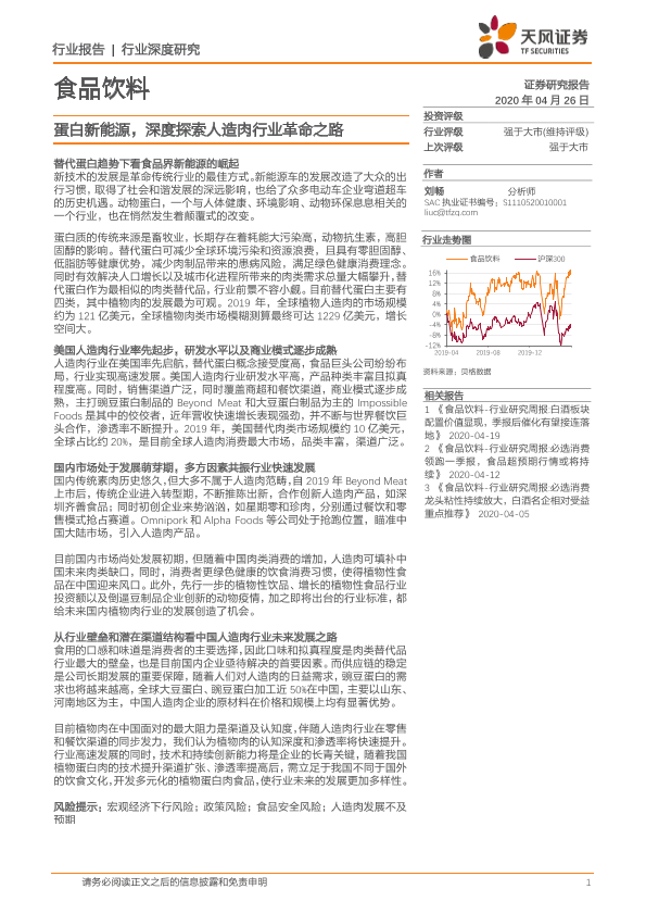 【天风证券】【20200426】食品饮料行业深度研究:蛋白新能源,深度探索人造肉行业革命之路-29页