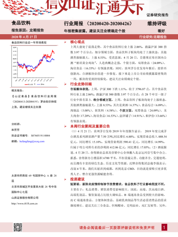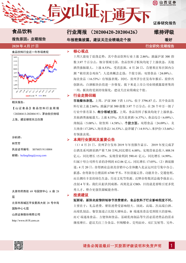 【山西证券】【20200427】20200427-山西证券-食品饮料行业周报:年报密集披露,建议关注业绩确定个股-11页
