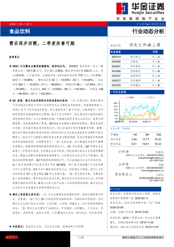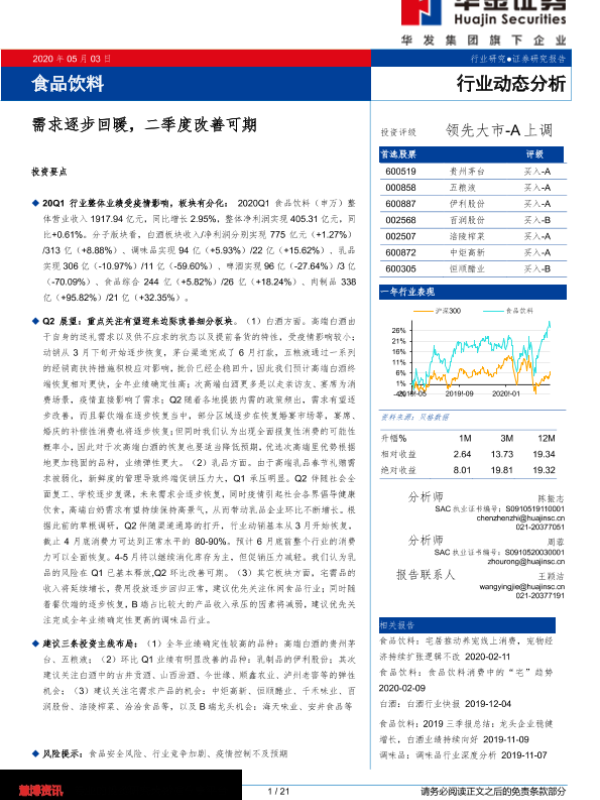 【华金证券】【20200503】20200503-华金证券-食品饮料行业动态分析:需求逐步回暖,二季度改善可期-21页