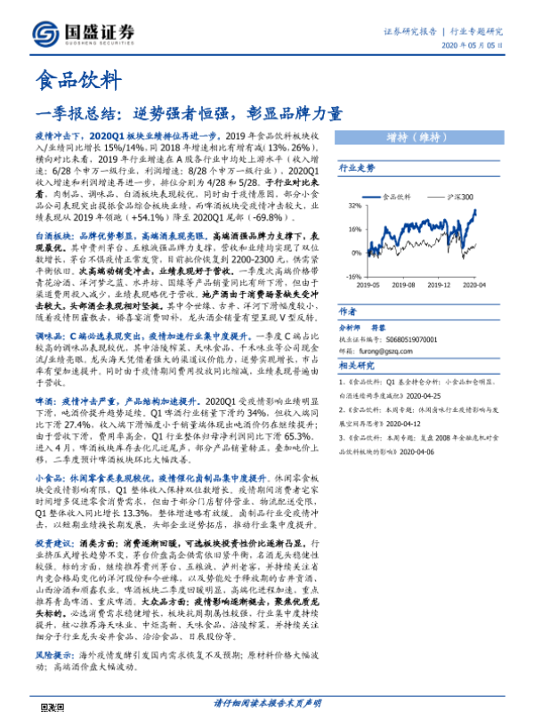 【国盛证券】【20200505】食品饮料行业专题研究一季报总结:逆势强者恒强,彰显品牌力量-29页