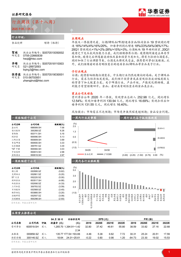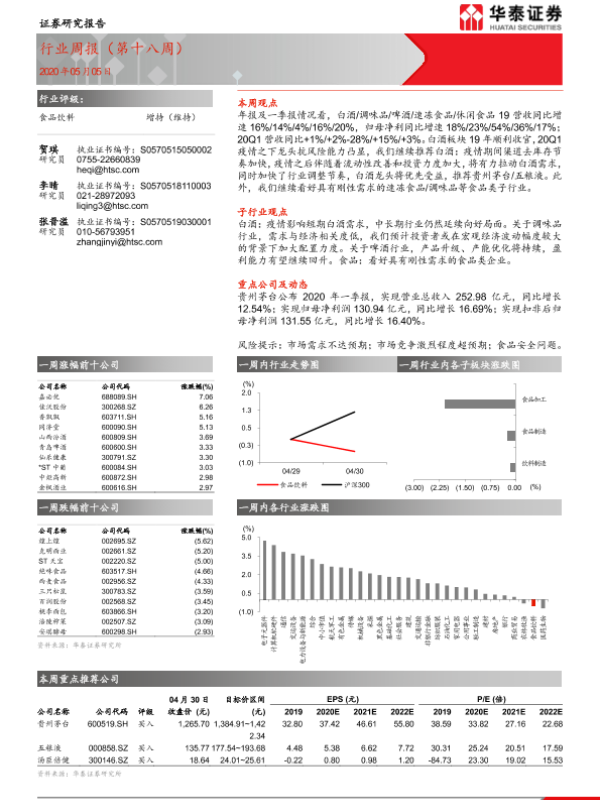 【华泰证券】【20200505】20200505-华泰证券-食品饮料行业周报(第十八周)-13页