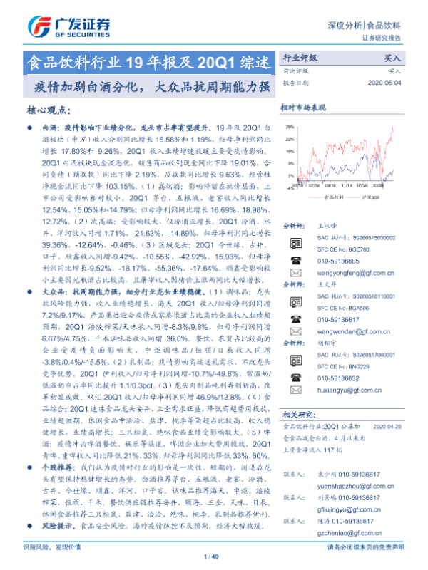 【广发证券】【20200504】食品饮料行业19年报及20Q1综述:疫情加剧白酒分化,大众品抗周期能力强-40页