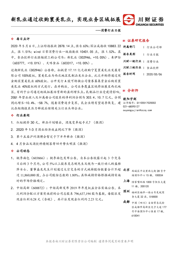 【川财证券】【20200506】消费行业日报:新乳业通过收购寰美乳业,实现业务区域拓展-4页