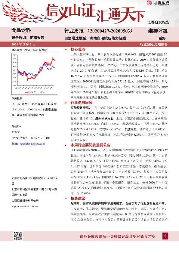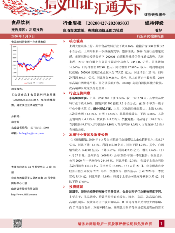 【山西证券】【20200505】20200505-山西证券-食品饮料行业周报:白酒增速放缓,高端白酒抗压能力较强-11页