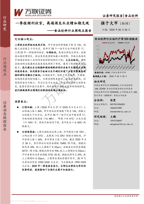 【万联证券】【20200506】20200506-万联证券-食品饮料行业周观点报告:一季报顺利收官,高端酒龙头业绩如期兑现-14页