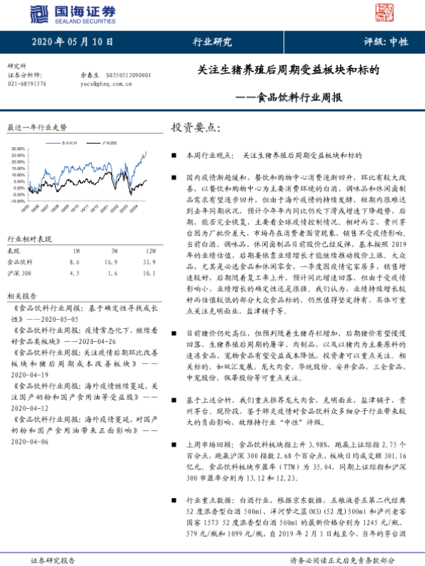 【国海证券】【20200510】食品饮料行业周报:关注生猪养殖后周期受益板块和标的-19页