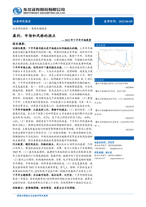 【东北证券】【20220609】2022年下半年市场展望:盈利、市场和风格的拐点-37页