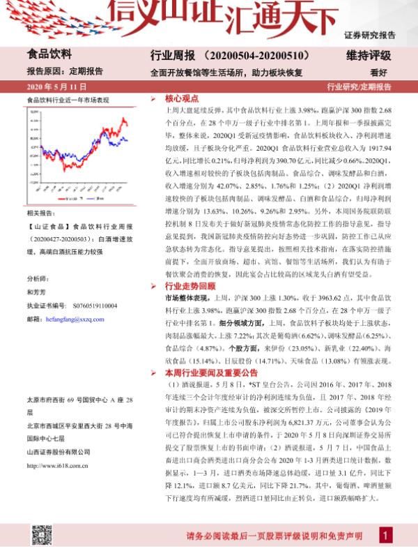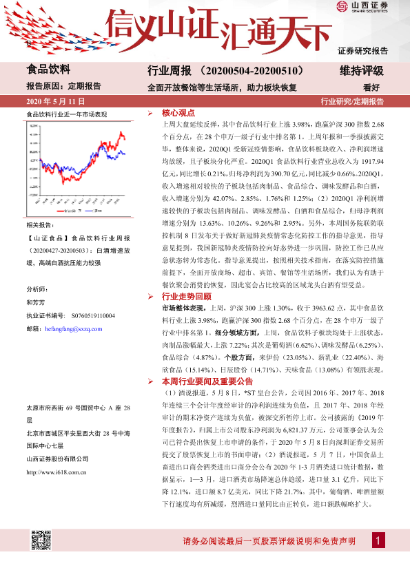 【山西证券】【20200511】20200511-山西证券-食品饮料行业周报:全面开放餐馆等生活场所,助力板块恢复-11页