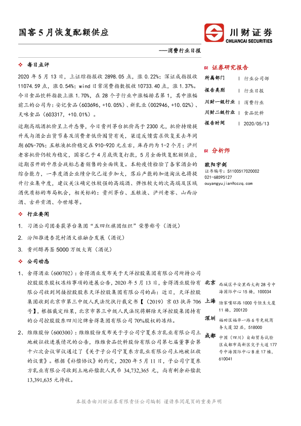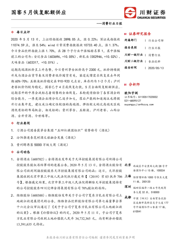 【川财证券】【20200513】消费行业日报:国窖5月恢复配额供应-3页