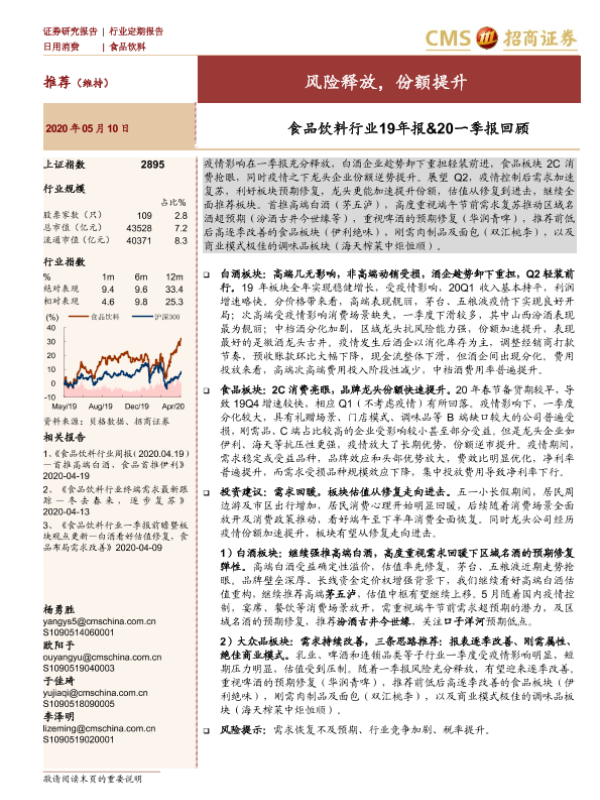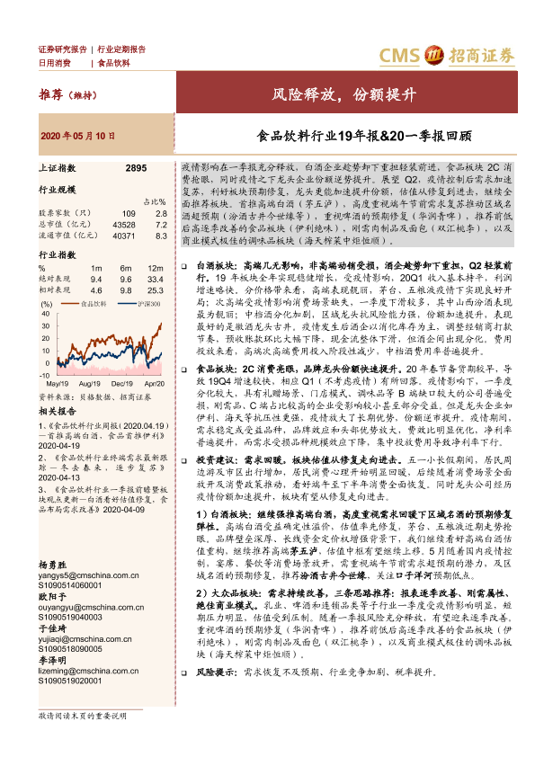 【海通证券】【20200510】食品饮料行业19年报&20一季报回顾:风险释放,份额提升-13页