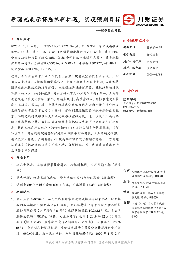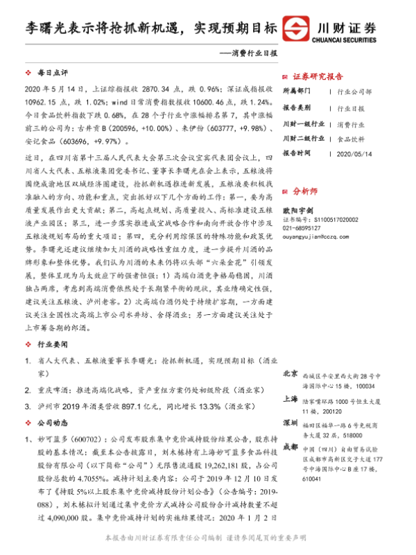 【川财证券】【20200514】消费行业日报:李曙光表示将抢抓新机遇,实现预期目标-3页