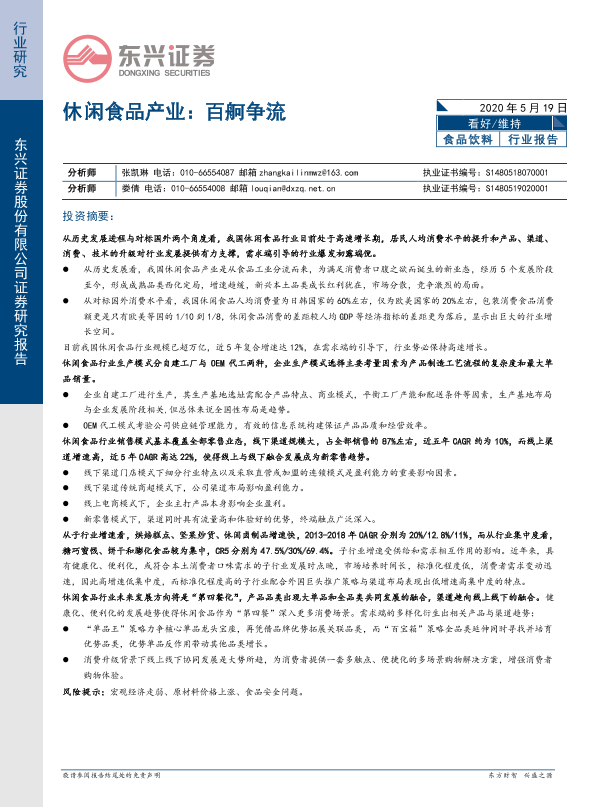 【东兴证券】【20200519】食品饮料:休闲食品产业:百舸争流-20页