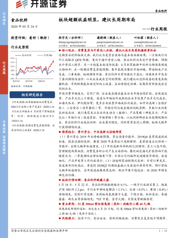 【开源证券】【20200524】20200524-开源证券-食品饮料行业周报:板块超额收益明显,建议长周期布局-11页