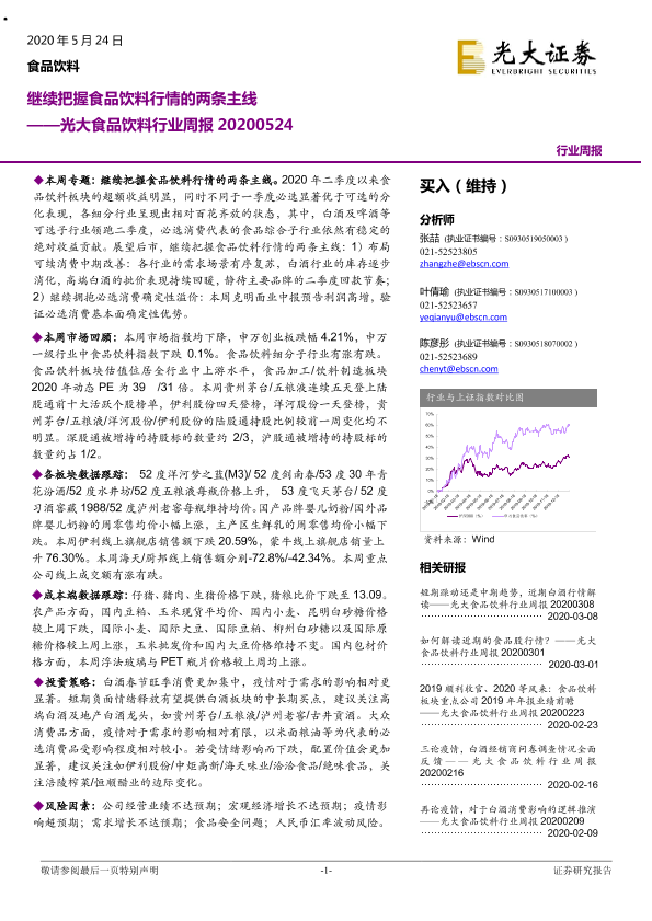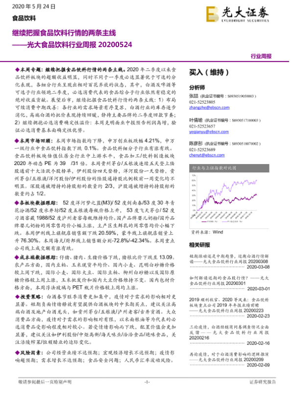 【光大证券】【20200524】20200524-光大证券-光大食品饮料行业周报:继续把握食品饮料行情的两条主线-22页