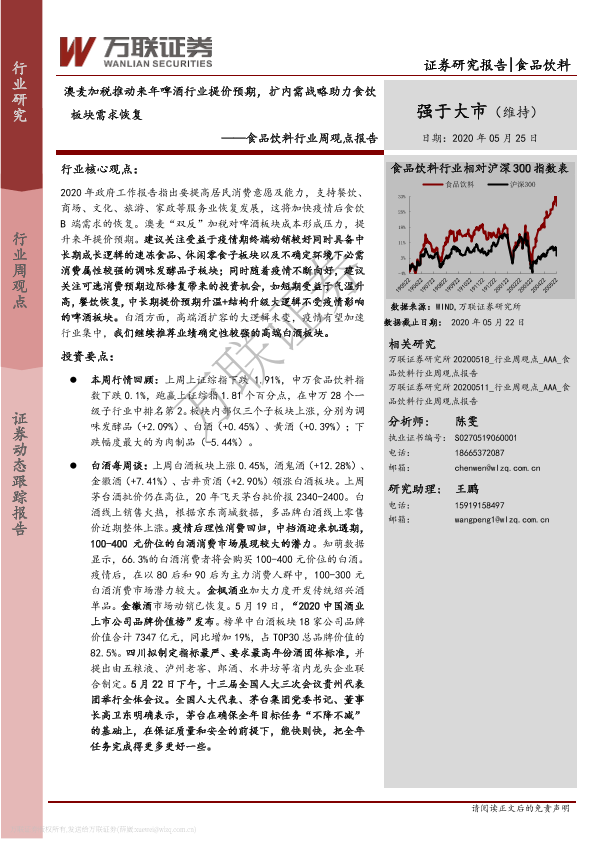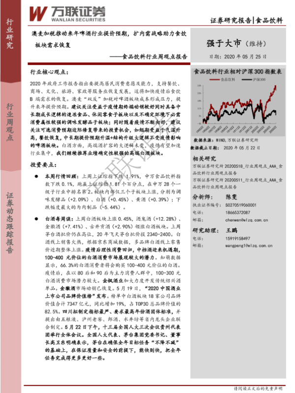 【万联证券】【20200525】食品饮料行业周观点报告:澳麦加税推动来年啤酒行业提价预期,扩内需战略助力食饮板块需求恢复-13页