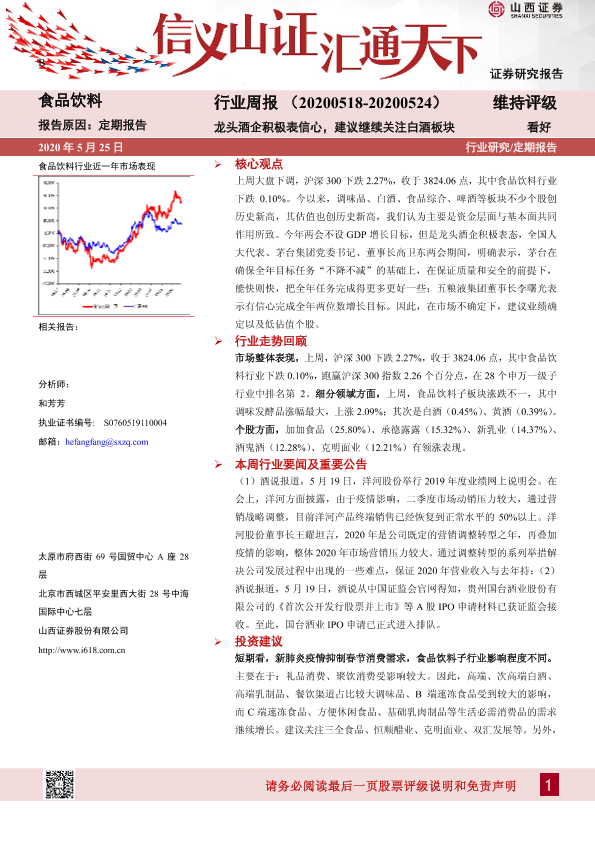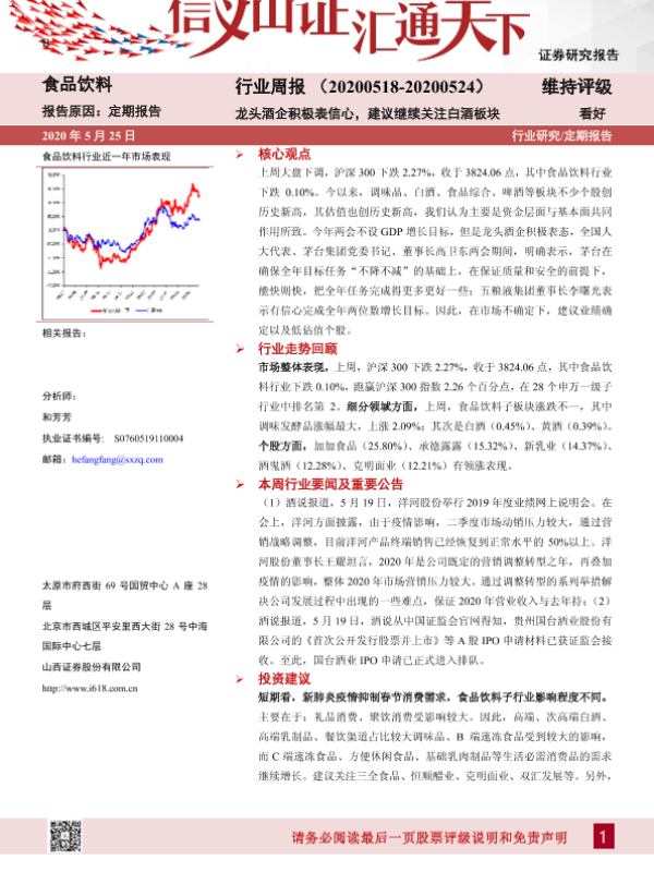 【山西证券】【20200525】20200525-山西证券-食品饮料行业周报:龙头酒企积极表信心,建议继续关注白酒板块-11页