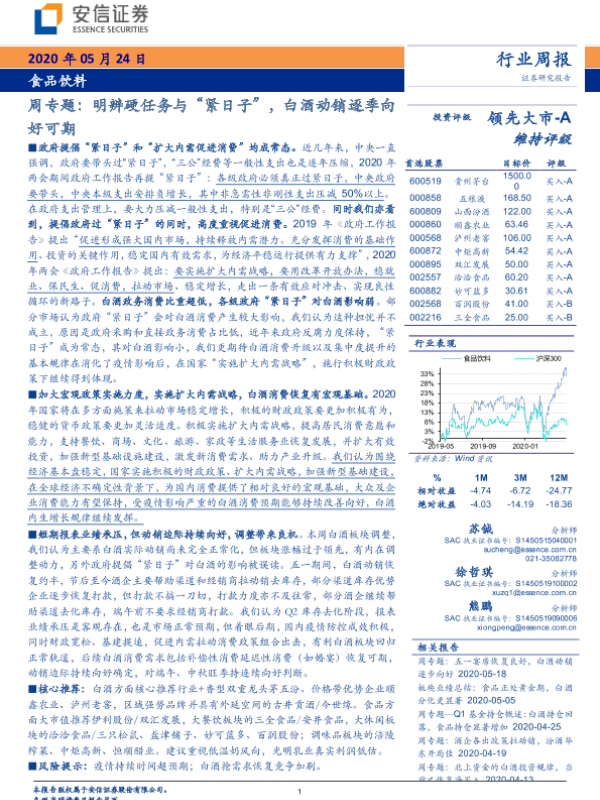 【安信证券】【20200524】食品饮料周专题:明辨硬任务与“紧日子”,白酒动销逐季向好可期-23页