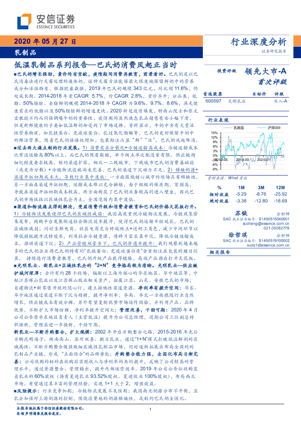 【安信证券】【20200527】乳制品:低温乳制品系列报告—巴氏奶消费风起正当时-20页