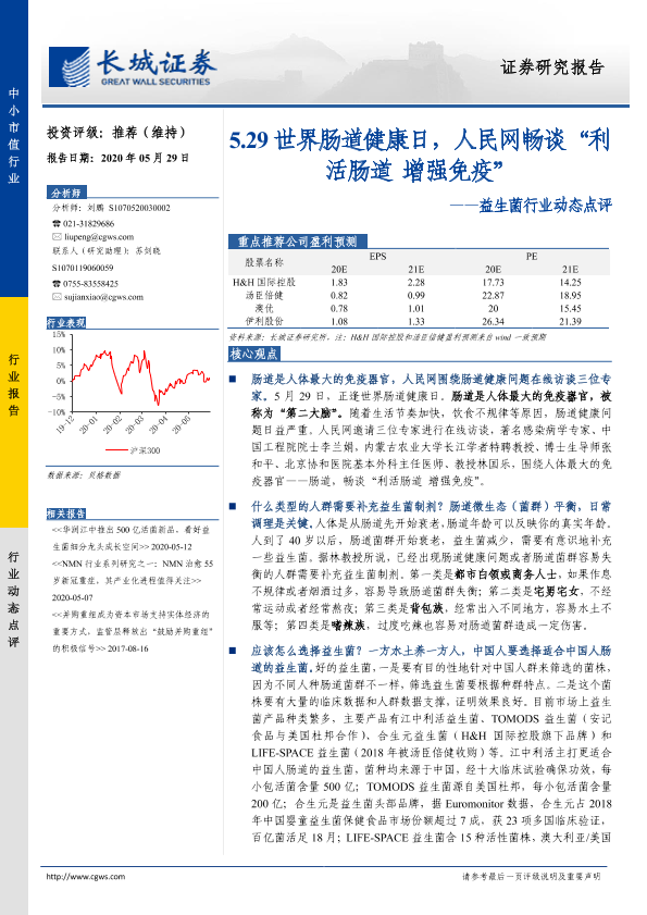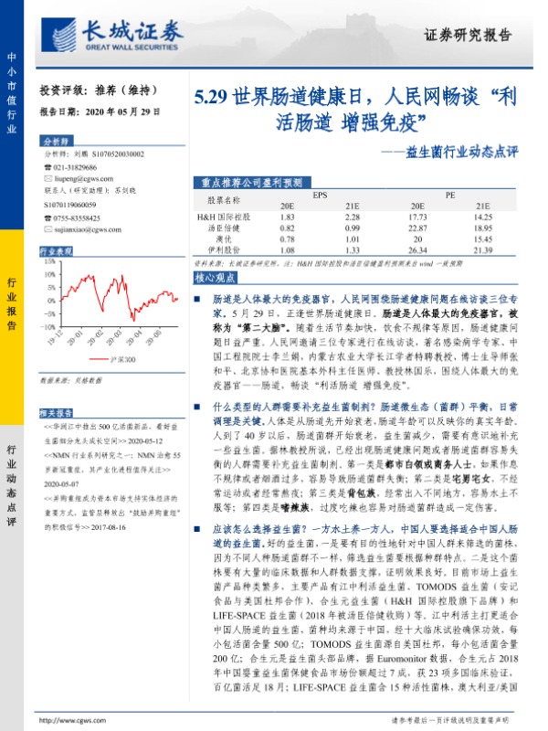 【长城证券】【20200529】长城证券-益生菌行业动态点评:5.29世界肠道健康日,人民网畅谈“利活肠道增强免疫”-3页