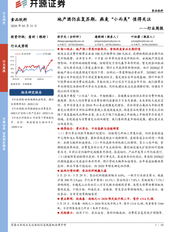 【开源证券】【20200531】20200531-开源证券-食品饮料行业周报:地产酒仍在复苏期,燕麦“小而美”值得关注-10页