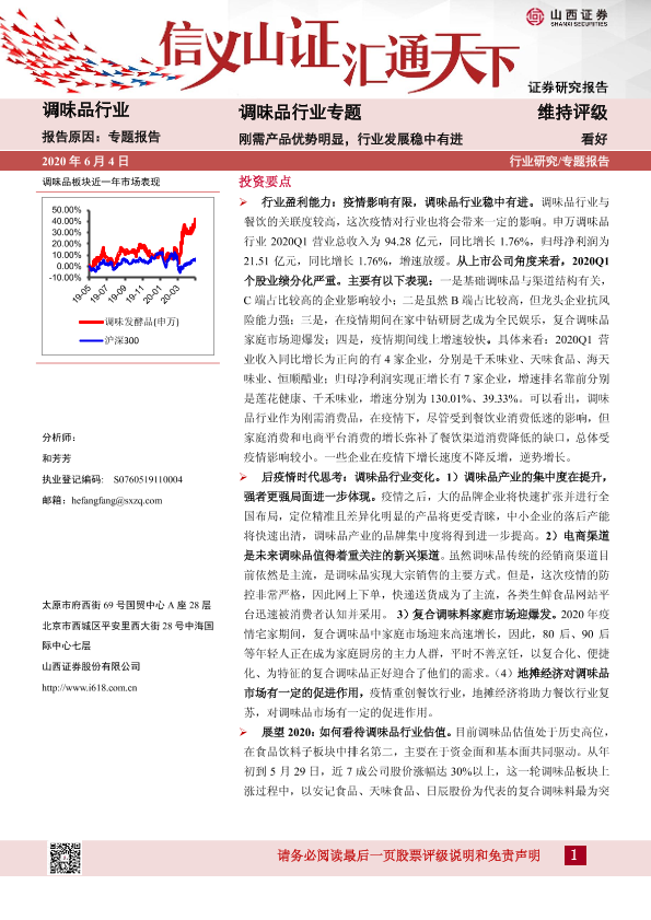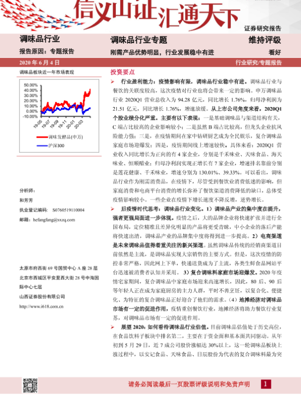 【山西证券】【20200604】20200604-山西证券-调味品行业专题:刚需产品优势明显,行业发展稳中有进-22页