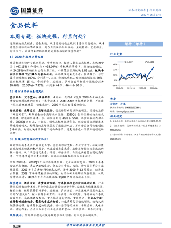【国盛证券】【20200607】20200607-国盛证券-食品饮料本周专题:板块走强,行至何处?-13页
