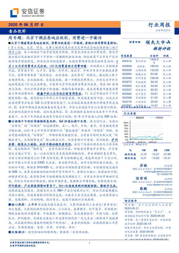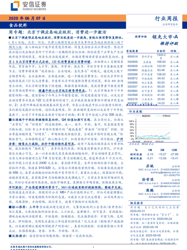 【安信证券】【20200607】20200607-安信证券-食品饮料周专题:北京下调应急响应级别,消费进一步激活-21页