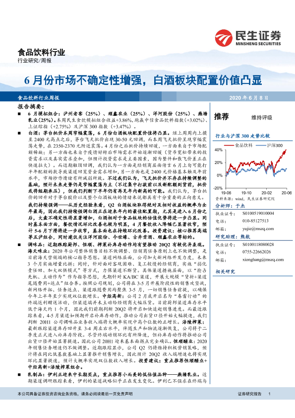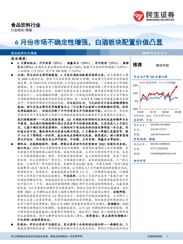【民生证券】【20200608】20200608-民生证券-食品饮料行业周报:6月份市场不确定性增强,白酒板块配置价值凸显-29页