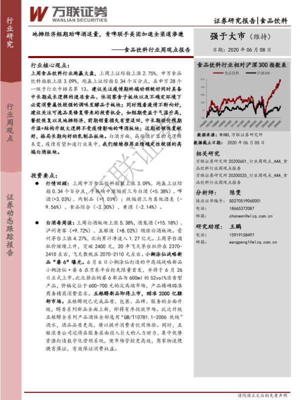 【万联证券】【20200608】20200608-万联证券-食品饮料行业周观点报告:地摊经济短期助啤酒追量,青啤联手美团加速全渠道渗透-11页