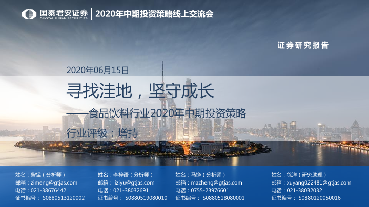 【国泰君安证券】【20200615】食品饮料行业2020年中期投资策略:寻找洼地,坚守成长-53页