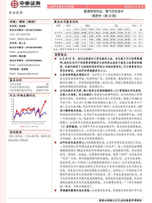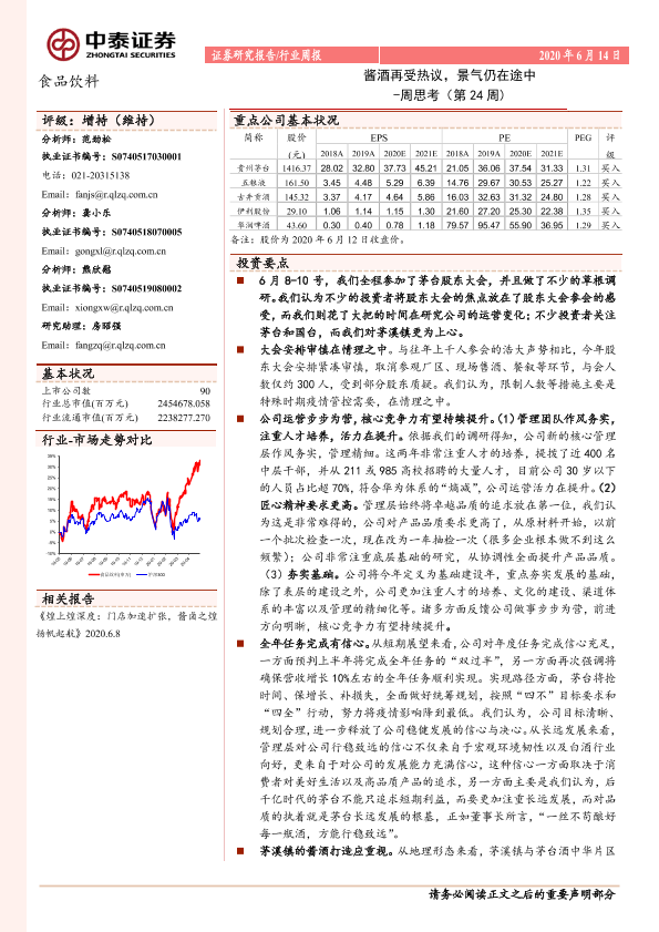 【中泰证券】【20200614】食品饮料周思考(第24周):酱酒再受热议,景气仍在途中-9页