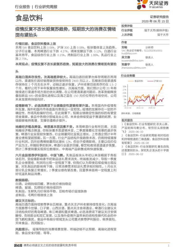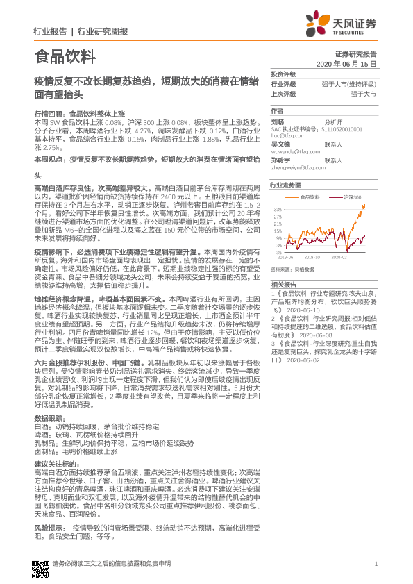 【天风证券】【20200615】20200615-天风证券-食品饮料行业研究周报:疫情反复不改长期复苏趋势,短期放大的消费在情绪面有望抬头-11页
