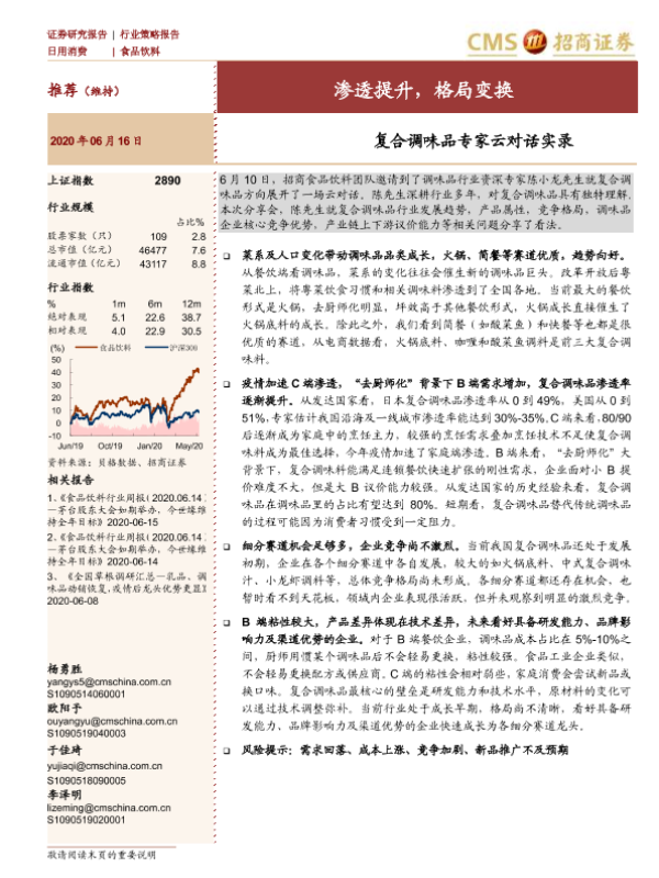 【海通证券】【20200616】食品饮料:复合调味品专家云对话实录-渗透提升,格局变换-8页