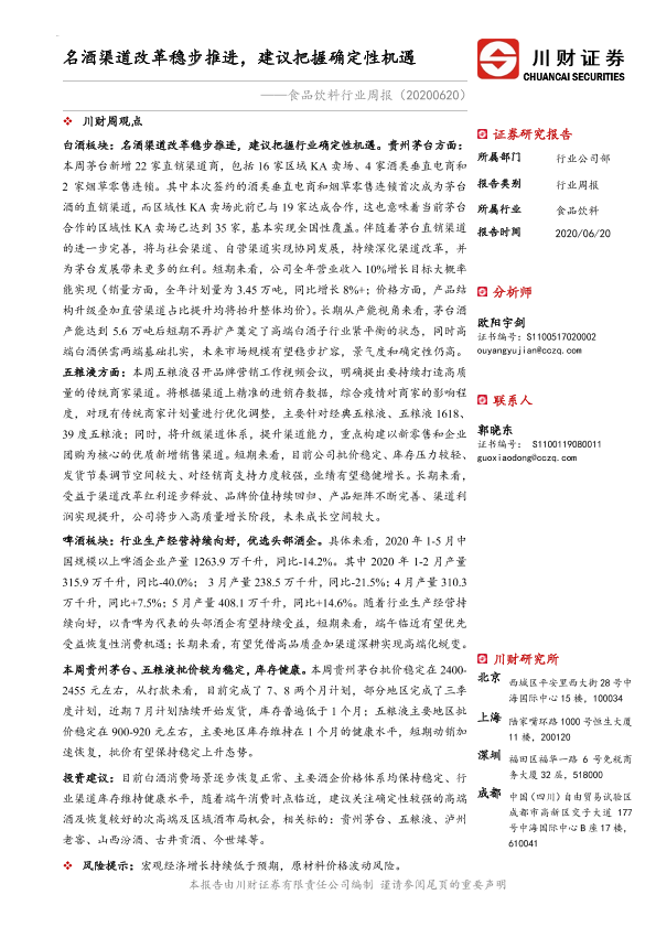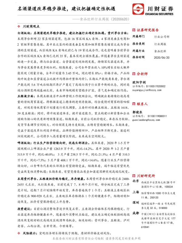 【川财证券】【20200620】食品饮料行业周报:名酒渠道改革稳步推进,建议把握确定性机遇-13页