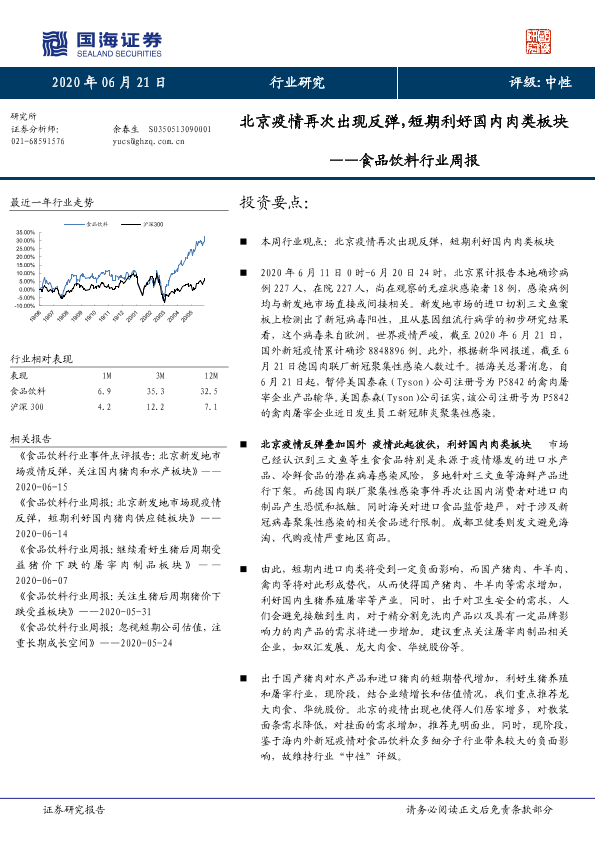 【国海证券】【20200621】食品饮料行业周报:北京疫情再次出现反弹,短期利好国内肉类板块-18页