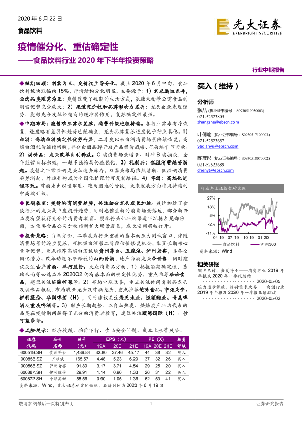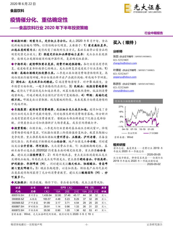 【光大证券】【20200622】食品饮料行业2020年下半年投资策略:疫情催分化、重估确定性-50页