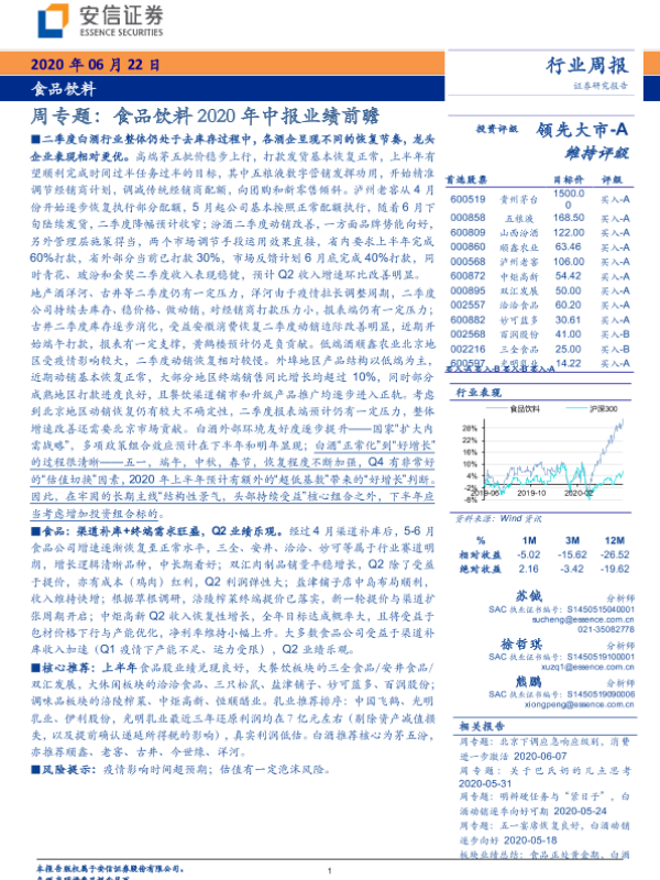 【安信证券】【20200622】食品饮料2020年中报业绩前瞻-22页