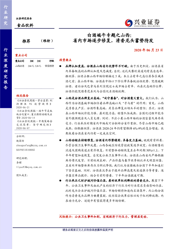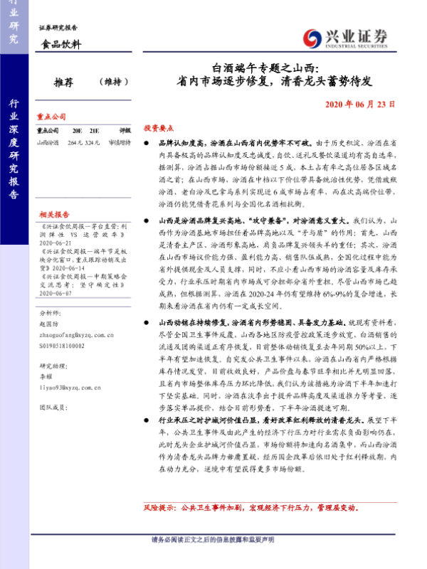 【兴业证券】【20200623】白酒端午专题之山西:省内市场逐步修复,清香龙头蓄势待发-13页