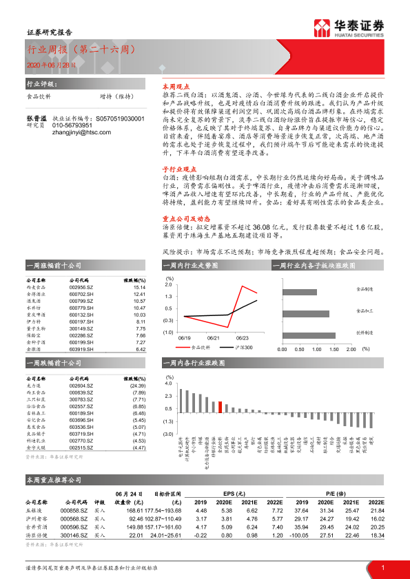 【华泰证券】【20200628】20200628-华泰证券-食品饮料行业周报(第二十六周)-8页